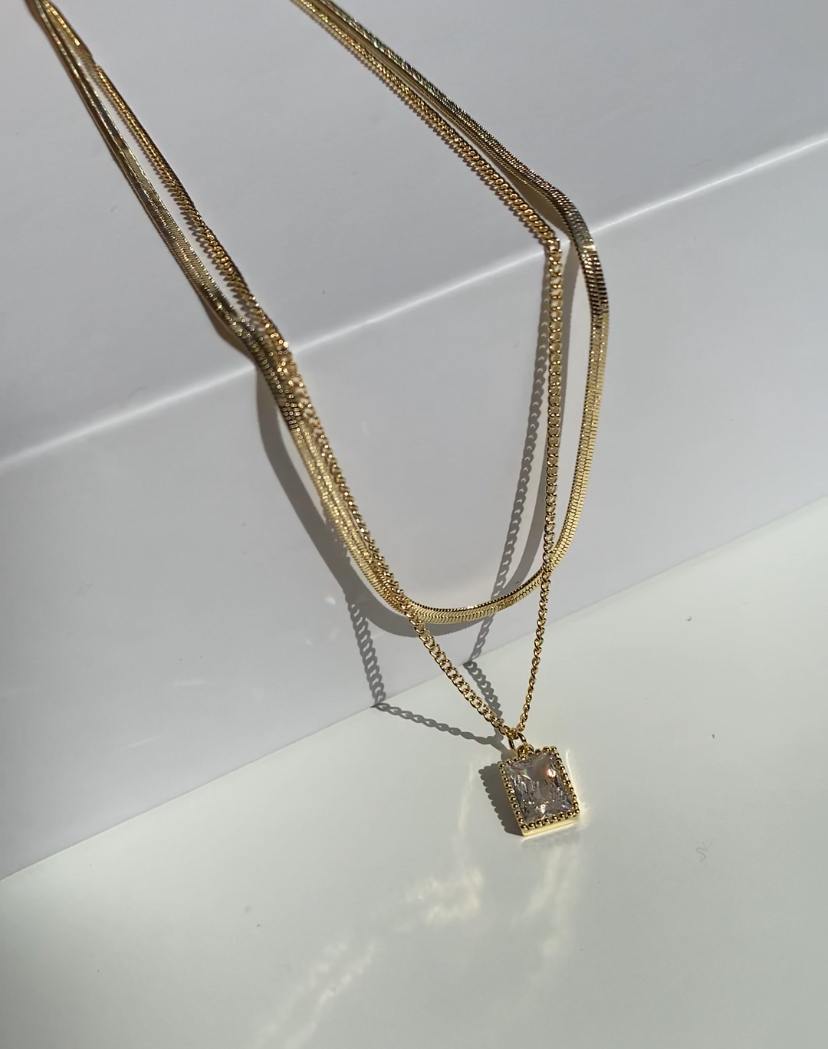 CASSIA halskæden er en dobbeltkædet halskæde som er elegant med en tynd slange kæde og en flot Cubic Zirkonia vedhæng. Et delikat smykke der giver et fint Classy look.