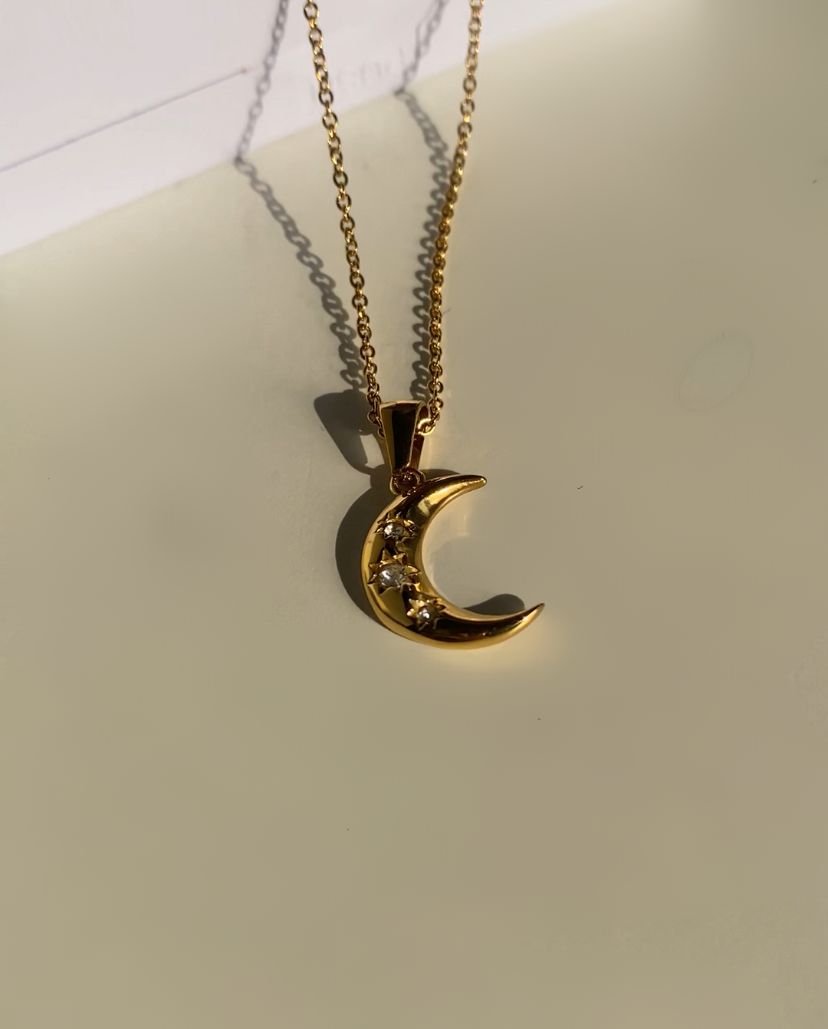 Denne elegante månehalskæde er prydet med funklende cubic zirconia-sten, der tilføjer et sofistikeret touch. Lumea halskæden er PVD guldbelagt og er en perfekt accessory til både hverdagsbrug og festlige anledninger.